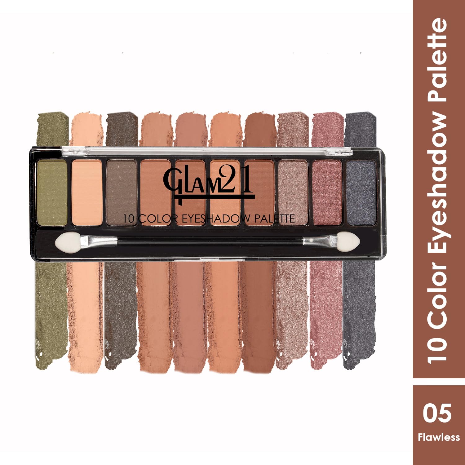 Glam21 Flawless 10 Color Eyeshadow Palette Long-Lasting Smudge Free