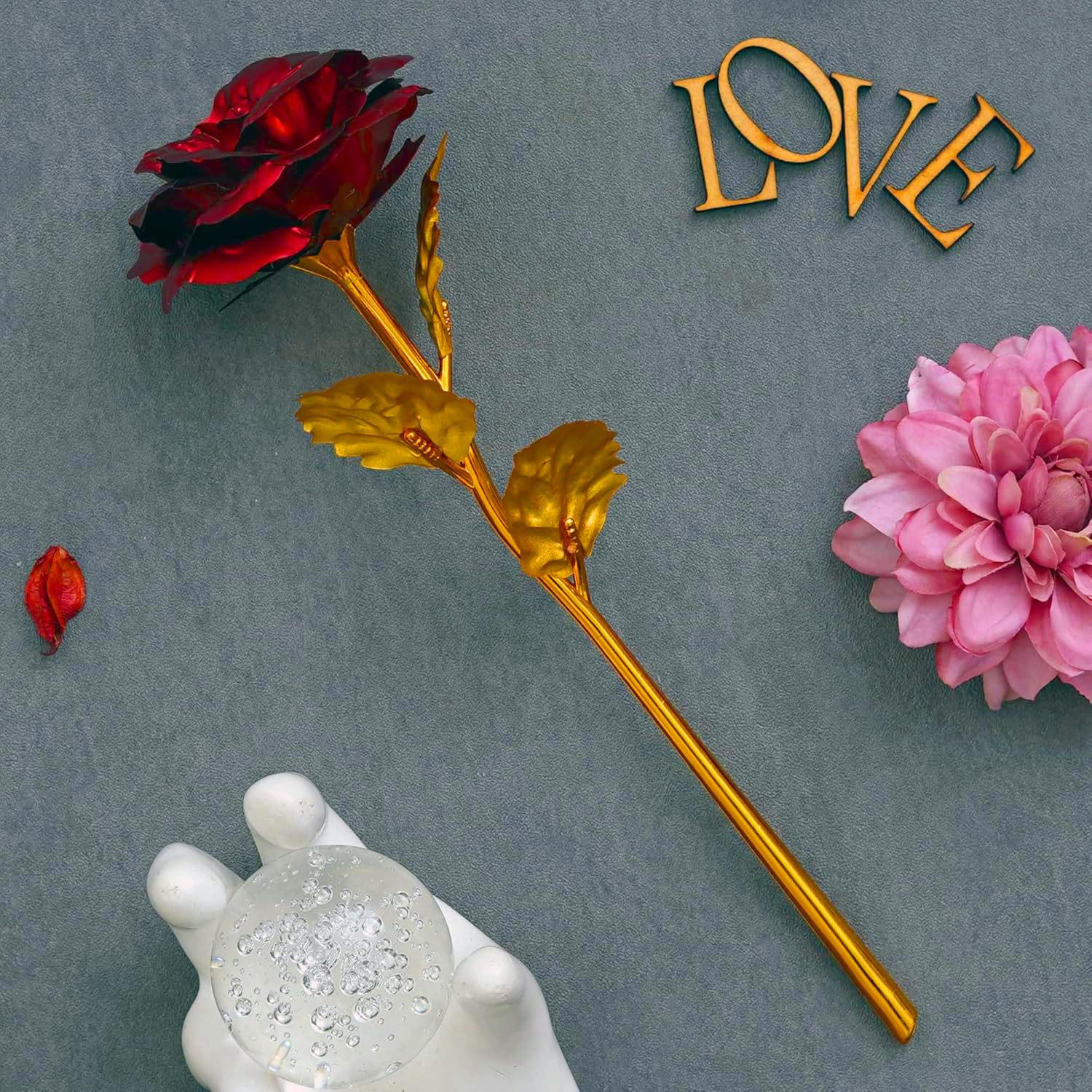 - Package Content: One eCraftIndia Golden Red Rose Flower - Best Gift for Valentine's Day, Mother's Day