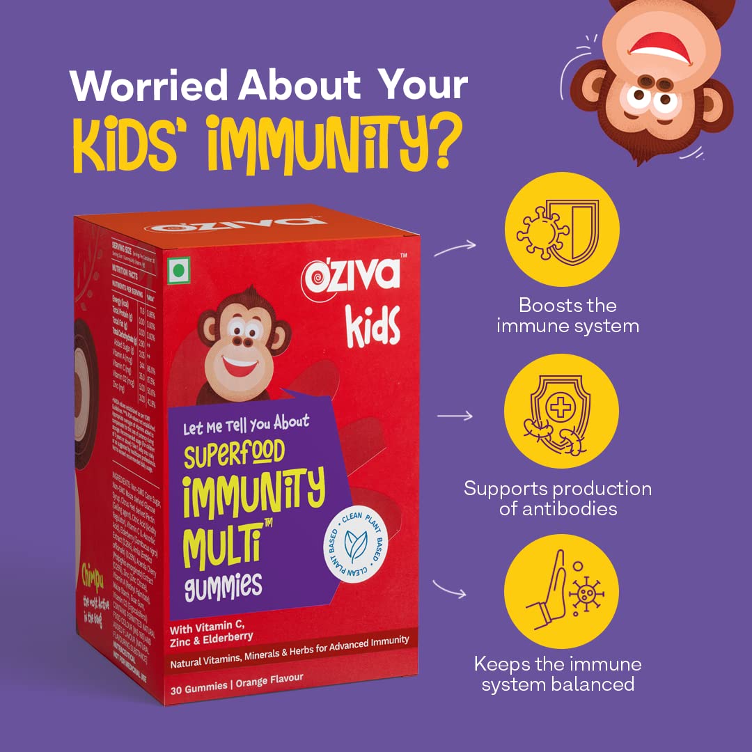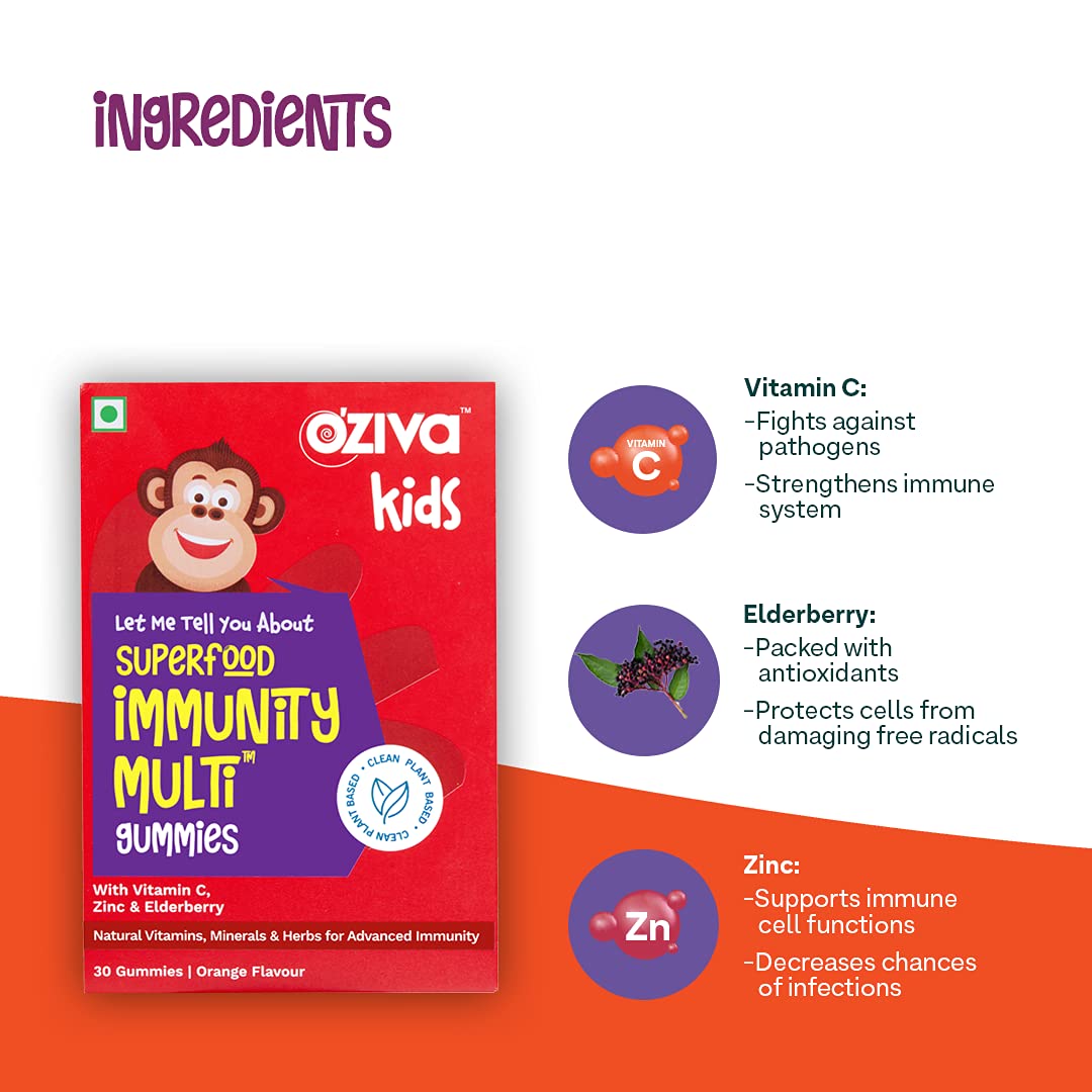 OZiva Kids Superfood Immunity Multi Gummies (with Vitamin C, Zinc and Elderberry) to support advanced immunity