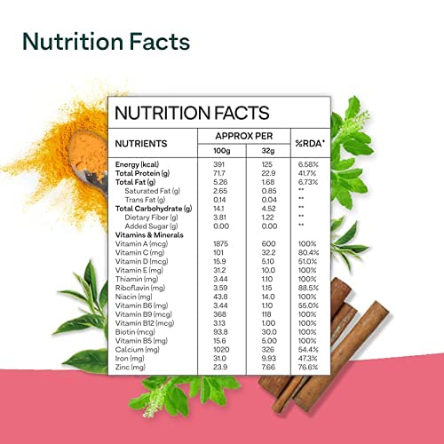 OZiva Protein & Herbs for Women packs 23g of Clean Protein (cold processed whey protein), 5.5g BCAA with essential Multivitamins, Minerals, and Ayurvedic Herbal extracts.