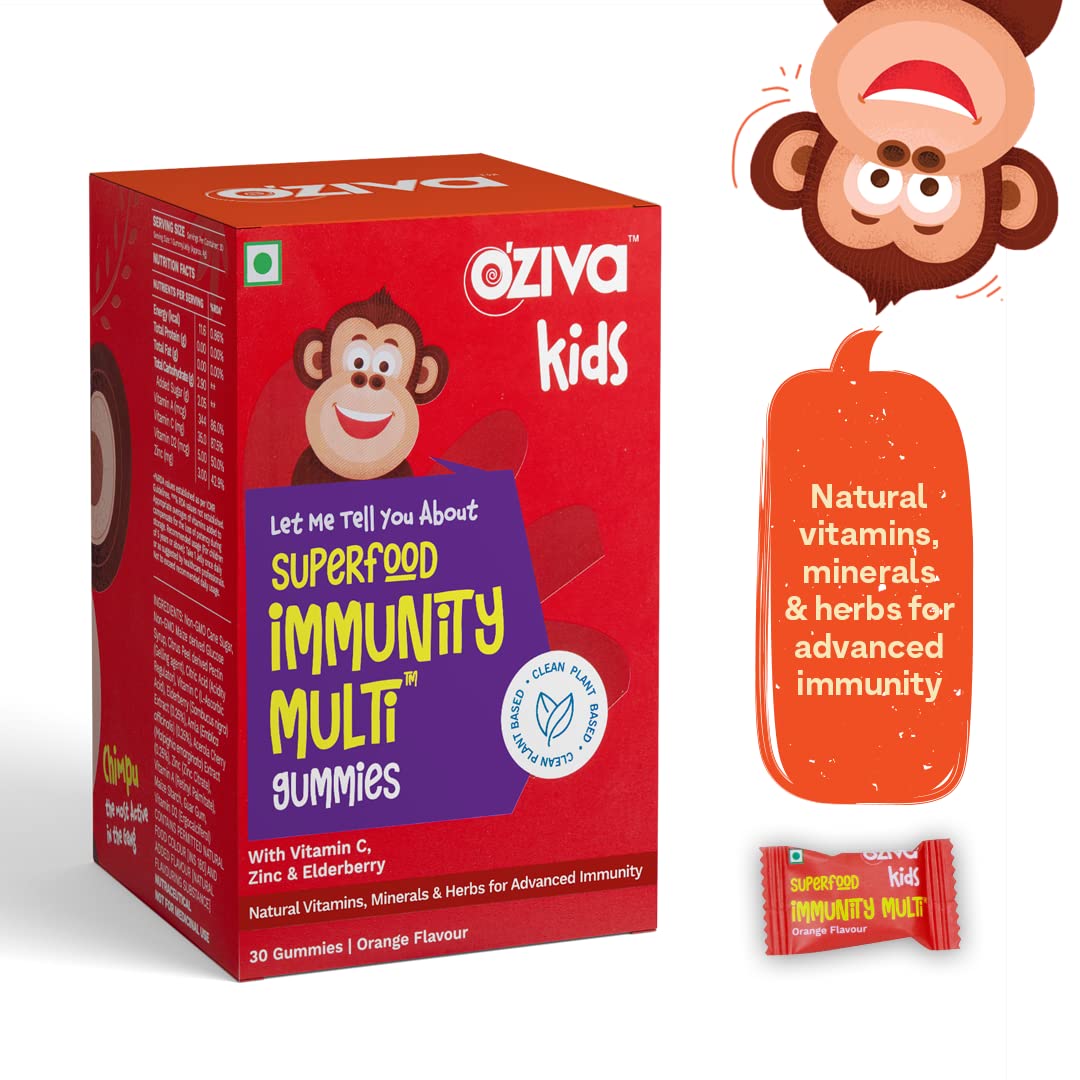 OZiva Superfood For Super Kids (Vision + Immunity + Brain MultiVitamin Gummies) For 5 years & Above | Pack Of 3 - 30 Gummies Each | With Vitamin C, Zinc, Brahmi & Ashwagandha
