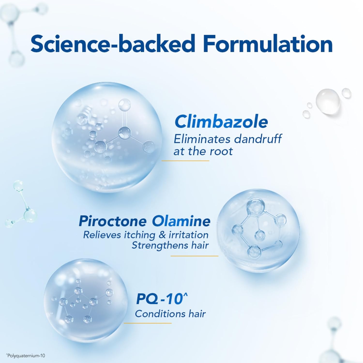 - Climbazole targets the root of dandruff that is Malassezia, eliminates it from scalp and tackles its build-up. Thus helps remove dandruff and prevents its re-occurrence. ZPTO prevents dandruff causing microbes from producing scalp irritants relieving from itching, irritation accompanying dandruff